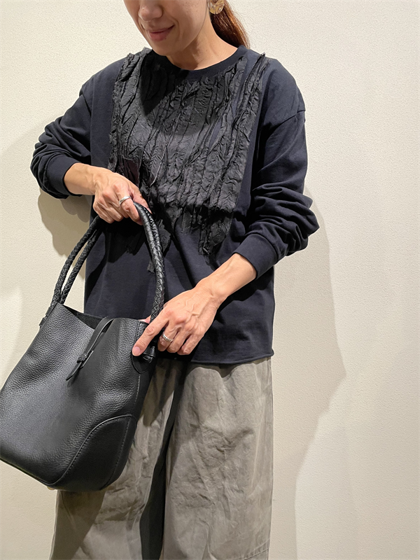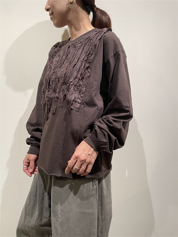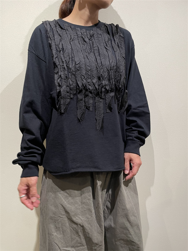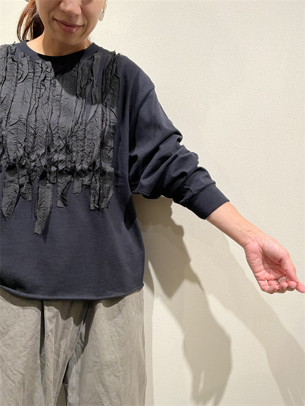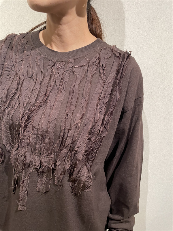 ダリア人気の定番アイテム、キュプラリボン付きリメイクカットソー。