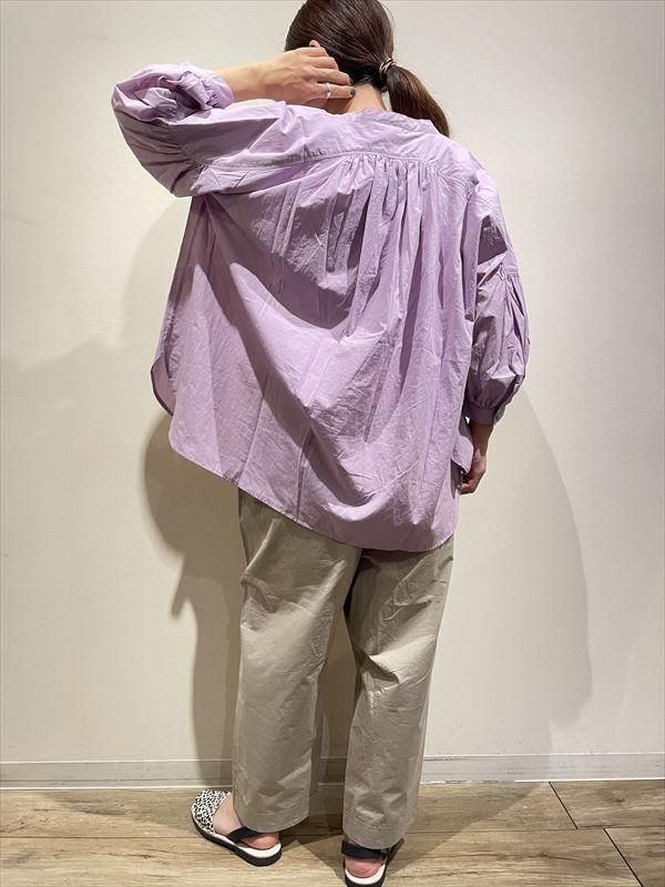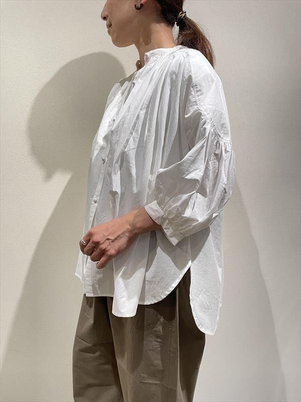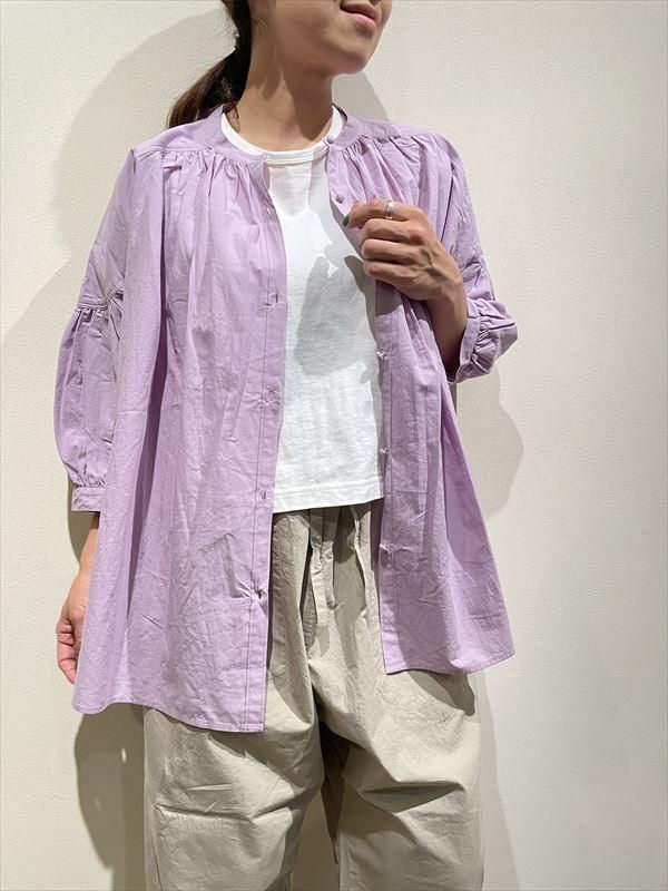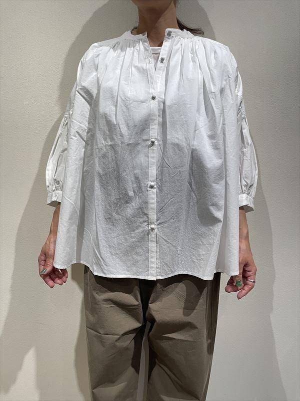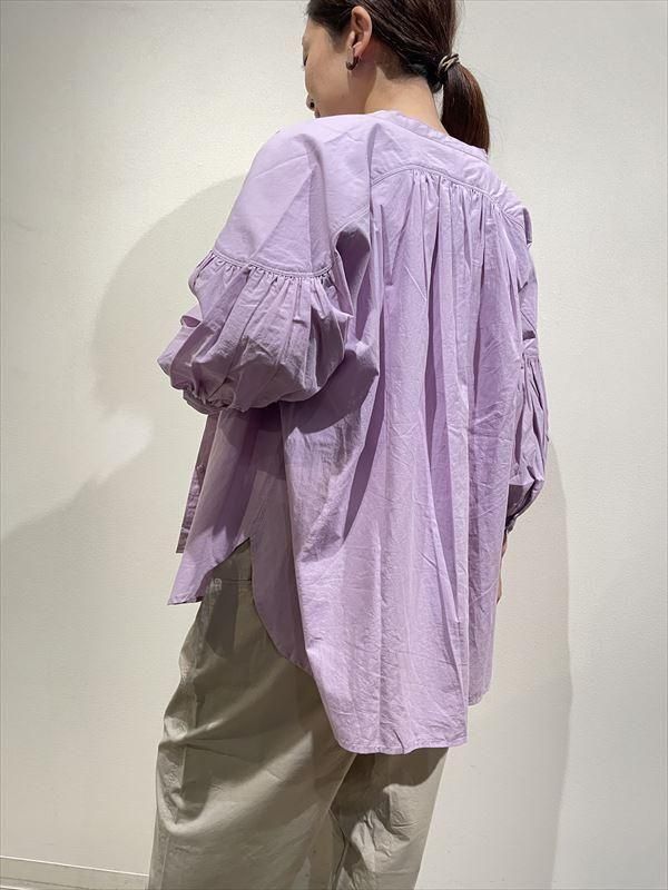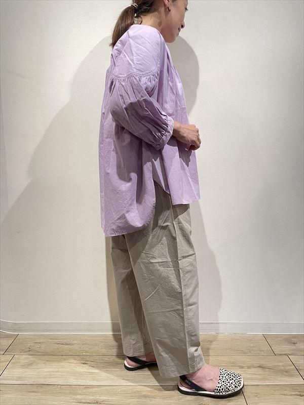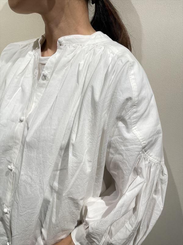 前後とお袖にギャザーをたっぷり入れて、軽やかな動きのあるデザインに。