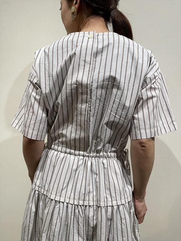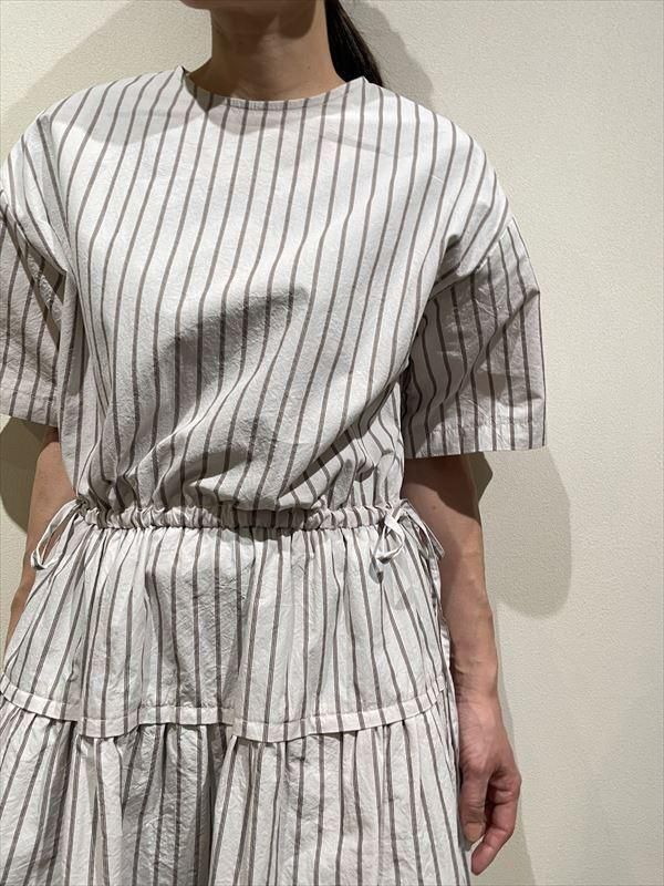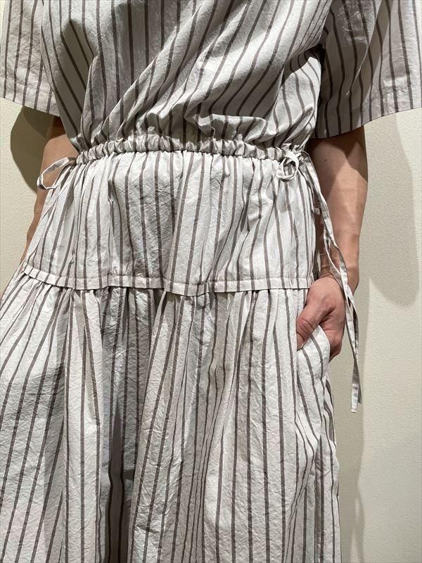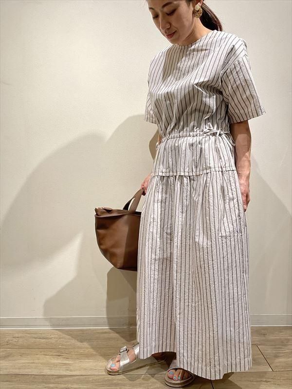 アレンジも自由で、ウエストで切り替えたティアードのディテールがアクセントになって、紐を絞らずにゆったり着てもニュアンスが出るように仕上がっています!