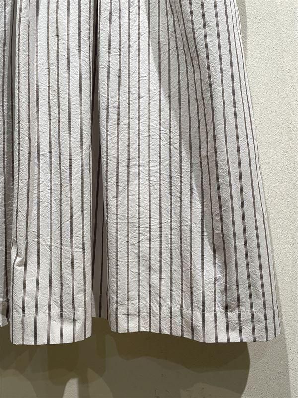 素材は、経糸にナイロン糸、緯糸に綿糸を使用し、そのテンション差によりワッシャー感のある表情と、ドライなタッチを表現しています。